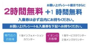 ※追加1時間無料はイオンと専門店で購入された方が対象です