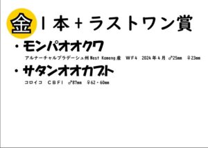 銀賞のセンパーオオヒラタカナブンの累代がワイルドとなってますが、CBのブリード品の誤りでした